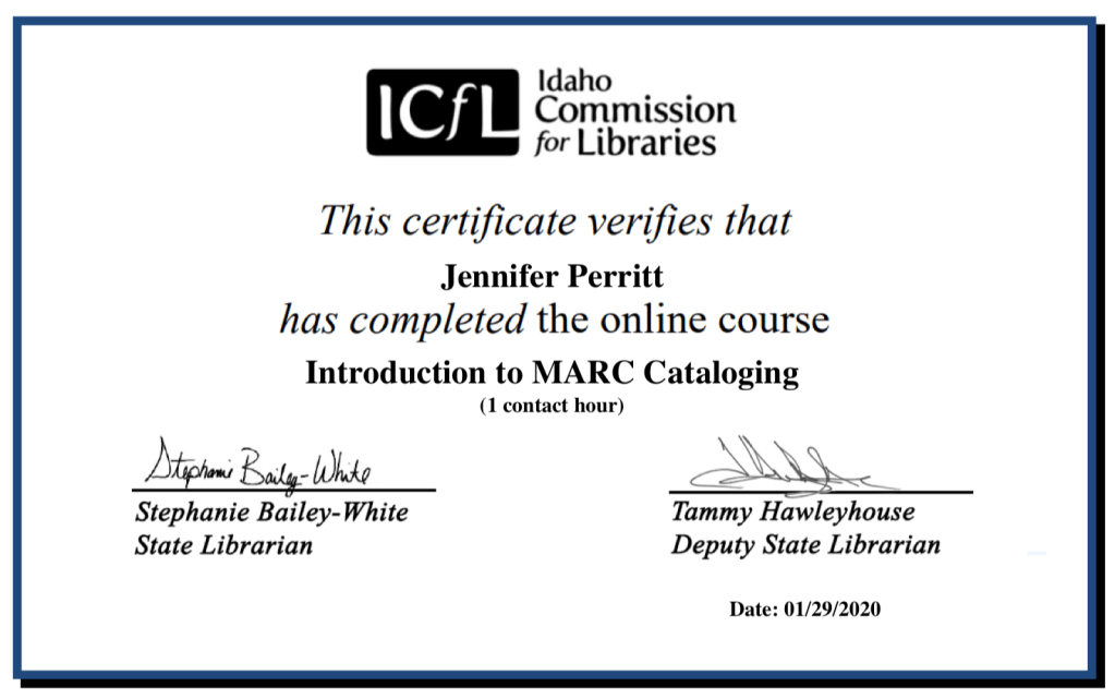 - ABLE Introduction to MARC Cataloging (The Idaho Commission for Libraries)