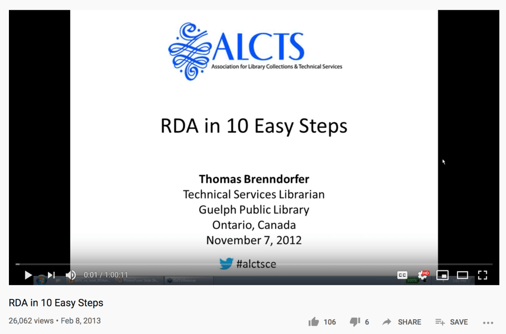 - “RDA in Ten Easy Steps,” Thomas Brenndorfer [https://www.youtube.com/watch?v=D3hafSNH_3A&feature=youtu.be]